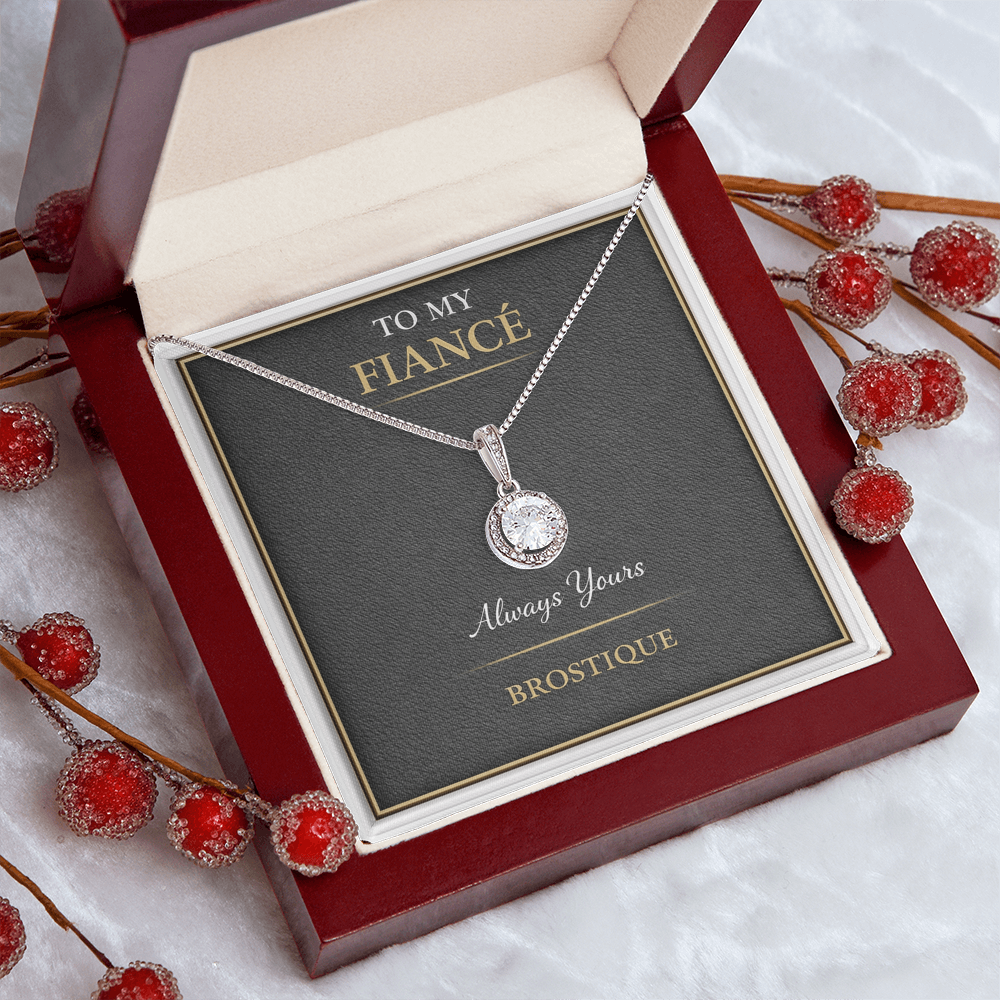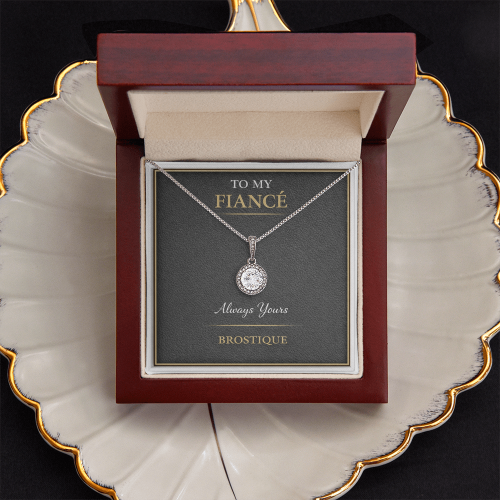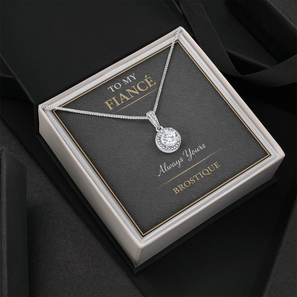 This elegant necklace is paired with a Brostique message card created for the woman you’ve chosen to share your future with.